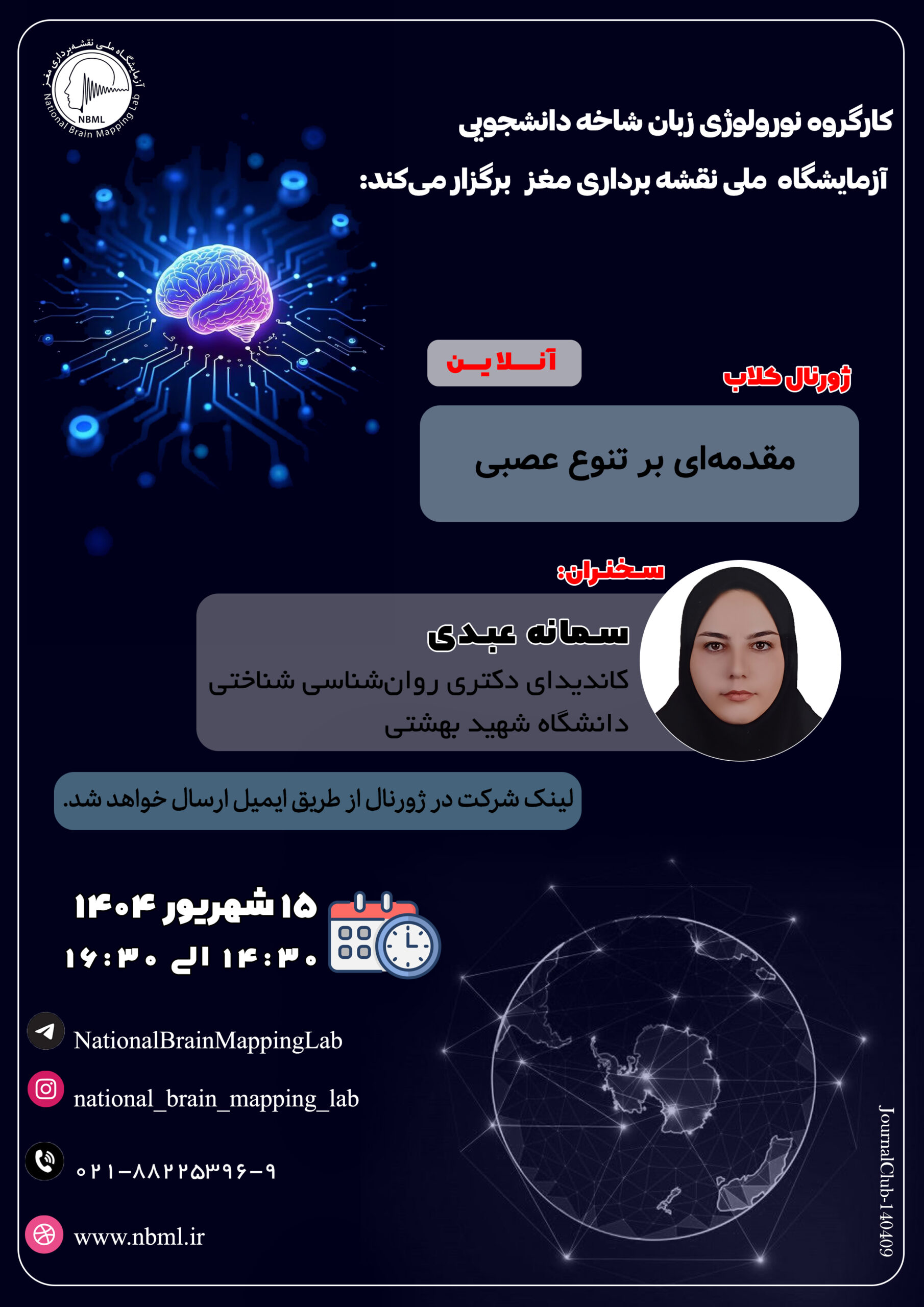 کارگروه نورولوژی زبان شاخه دانشجویی آزمایشگاه ملی نقشه برداری مغز برگزار می‌کند: